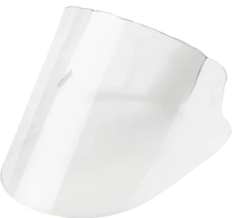 - The injection molded polycarbonate clear shield is shaped to hug your chest and side of your face when in use, and pivots up and out of the way when your task is done.
