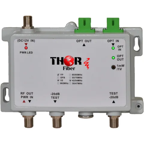 The F-MININODE is an HFC return path transmitter and RF optical reciever for use in fiber to the home applications. The unit has 45-1000MHz RF outputs for digital TV as well as an optional optical transmitter for the 5-45MHz cable modem return path. The F-MININODE has many applications in Hybrid Fiber Coax systems and for Fiber to the home applications. This is a compact and highly reliable unit for use with analog, digital video, and bi-directional data transmission in HFC networks.