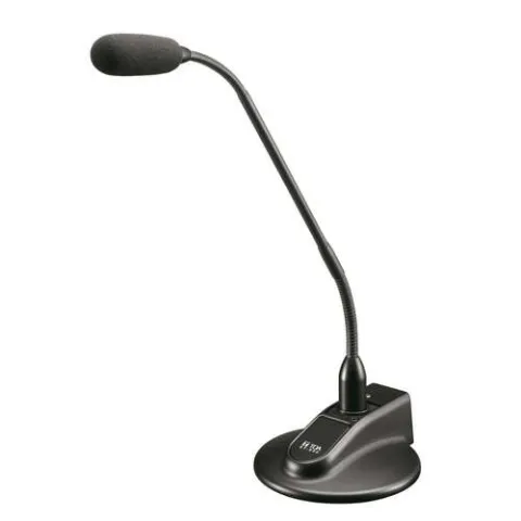 A windscreen shall be provided as an accessory. Two gooseneck adjustment points shall provide more flexible microphone positioning angles. A windscreen shall be provided as an accessory. The microphone shall be able to be plugged into an optional dedicated microphone stand. The microphone shall provide clear and high-quality sound, and be well-suited for conferences, lectures, and paging applications.