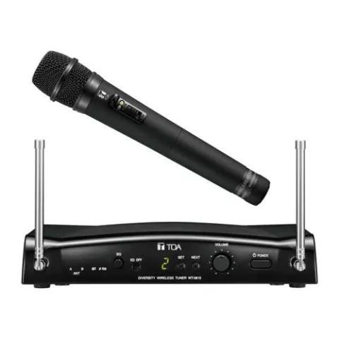 The WS-5225 includes a handheld wireless microphone WM-5225 and a diversity wireless tuner WT-5810. The WM-5225 wireless microphone employs an electret condenser microphone capsule and is suitable for any applications. Thanks to the PLL-synthesizer system, 64 different operating frequencies are made available. A high output power ensures stable radio signal transmission. The WT-5810 is a PLL-synthesizer controlled double superhetrodyne diversity tuner designed to be used with a UHF wireless system. It employs a compander noise reduction circuit to minimize the influence of ambient RF noise.