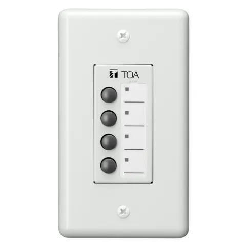 Designed for exclusive use with the 9000M2 Series or M-864D, the ZM-9011 is a wall mounted remote control panel having 4 buttons. It is used in conjunction with the RC-001T Remote control module or M-864D. It can be mounted in a standard 1-gang electrical box in the wall.