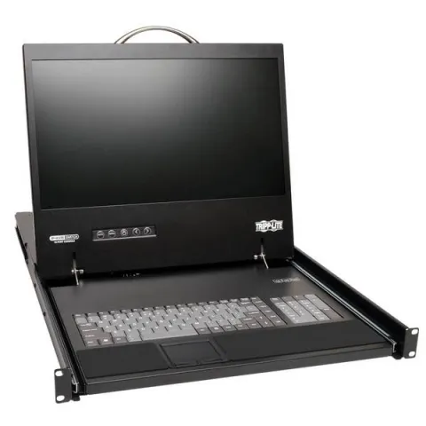 - Combines 8-port KVM switch, 19" LCD screen, keyboard and touchpad in a single 1U rack-mountable drawer