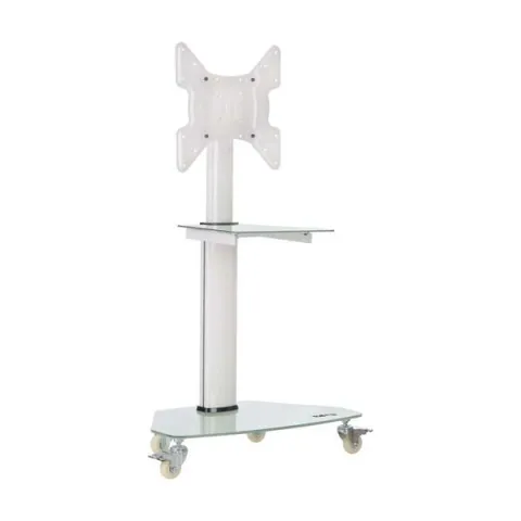 The durable frosted glass shelf and base hold audio/video and other components, such as laptops, projectors, webcams and Blu-ray players. Cables can be routed along the column to keep them hidden and avoid excessive clutter.