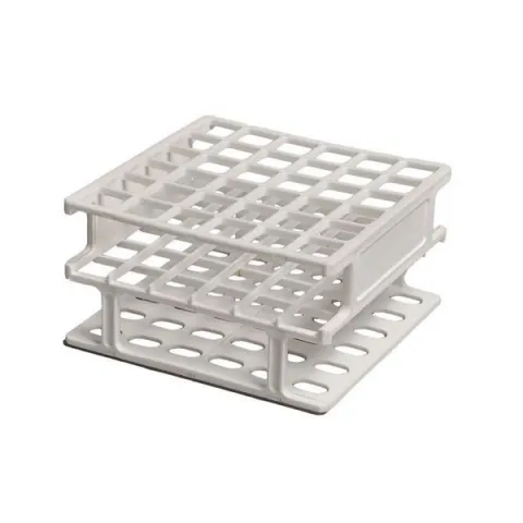 One-piece molded racks have a three-tier grid design. Polypropylene construction provides good chemical and thermal resistance. Autoclavable. Racks feature a 3/4" x 2-3/4" labeling area on two sides. Open design allows easy viewing of contents from all sides.