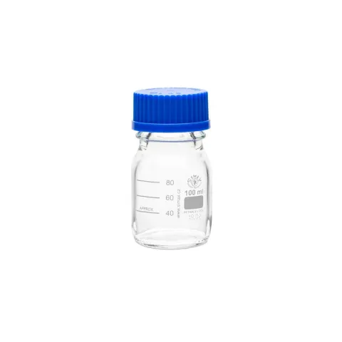 These borosilicate glass general purpose media bottles are autoclavable with permanent white imprinted graduations and marking spots. The screw thread opening has an I.D. of approximately 30mm. The supplied GL 45 cap is liner-less and both the cap and drip-free ring are polypropylene and autoclavable to 140°C. Maximum use temperature of bottles is 450°C.
