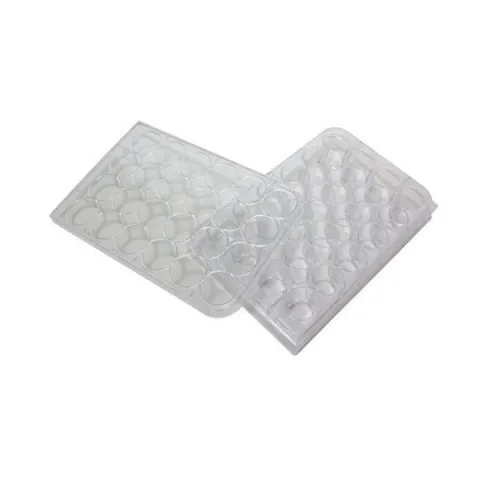 The 24-well plate measures 5" long x 3-1/4" wide x 7/8" high. Flatbottomed wells are 5/8" deep and approximately 10mm in diameter. Volume capacity 3.5ml.