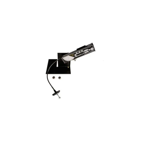 This simple but precise launcher projects 16 mm steel balls at ranges suitable for use on the bench top or from the bench to the floor. A protractor and plumb line make it easy to set any required launch angle from 45° downwards to straight up. Three different spring tensions give three repeatable launch speeds (ranges of 1m, 1.5m and 2m) and a magnetic piston ensures that the ball does not touch the side of the barrel and launches straight every time. A cable release gives a smooth triggering to prevent jerking. The unit can stand on its own or be fixed to the bench with a clamp.