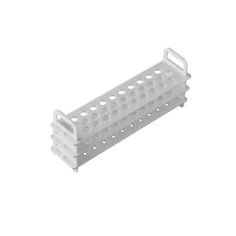 Polycarbonate racks feature ergonomic design for easy handling. Provides good chemical resistance. Autoclavable and withstands temperatures from -135° to 135°C. Includes molded-in numbers and letters for easy identification of test tubes.