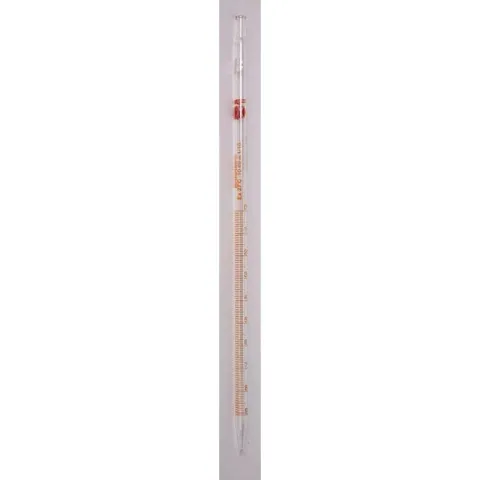 These pipettes are made from borosilicate glass in compliance with ASTM specification E1293 for Class B pipettes. Color-coded. Calibrated to deliver. Printed with durable amber markings.