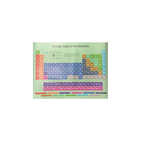 • Large Periodic Table of the Elements measures 47" wide and 35.5" tall is easily visible from every corner of the classroom. Durable material will withstand heavy classroom use. Elements included up through UUO #118.