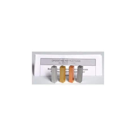 Square specimen set is used for density and specific gravity studies. Set of four includes aluminum, copper, steel, and brass cylinders. Includes a storage box and activity guide.
