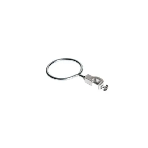 Steel rod, zinc-plated support ring with attached boss head clamp and thumbscrew. Distance from support to center of ring is 4-1/2" for all sizes.