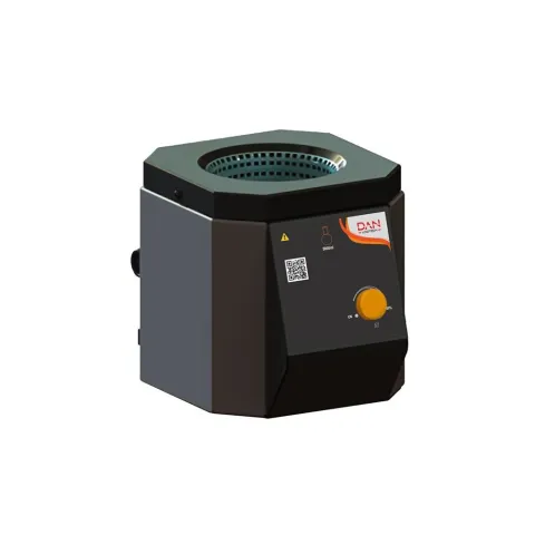 This series of analog heating mantles includes a case constructed of durable stainless steel and aluminum materials. The temperature level is adjustable up to 400° C. Knitted mantle is made from glass fiber yarn and designed to securely hold round bottom flasks with the top half of the flask visible during operation. Includes a spill collect system to drain solution if a flask breaks during use.