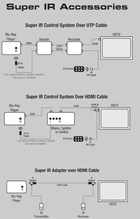 • IR Receivers are compatible with Vanco's HDMI Matrixes, Splitters, Switchers, and Extenders that are enabled with Super IR technology