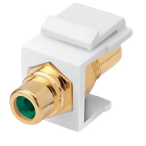 Vanco 820615 RCA Keystone Insert, Modular Wall Plate Insert by Vanco, Compatible with Leviton & ICC Systems, Insert White & Insulator Green