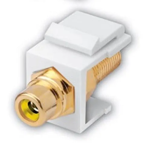 Vanco 820637 RCA Jack to F Female Keystone Insert, AV Wall-Plate Compatible, Colour-Coded Insulator Options, White & Insulator Color Yellow