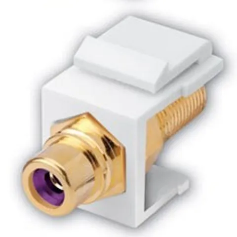 Vanco 820641 RCA Jack to F Female Keystone Insert, AV Wall-Plate Compatible, Colour-Coded Insulator Options, Ivory & Insulator Color Violet