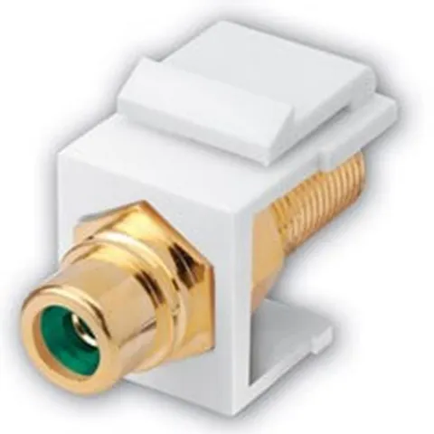 Vanco 820645 RCA Jack to F Female Keystone Insert, AV Wall-Plate Compatible, Colour-Coded Insulator Options, Ivory & Insulator Color Green