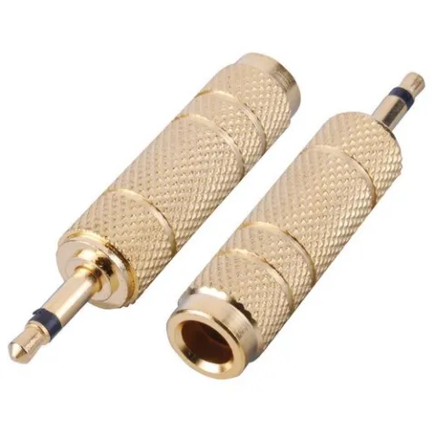 3.5 mm Mono Plug - 1/4″ Mono Jack Adapter, Gold Finish, Metal Build, Package