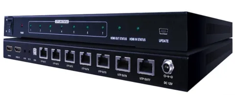 - Allows 1 HDMI source to be displayed on up to 7 HDMI displays over a single Cat5e or Cat6 cable
