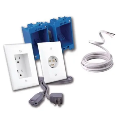 - Package that Includes: Dual Recessed Plug- in AC Power Outlet Safety-Designed Recessed Plug-in AC Power Inlet 36" Power Cord (14/3 SPT3) 12.5' Romex® NM-B 14/2 Cable In-Wall PVC Electrical Boxes