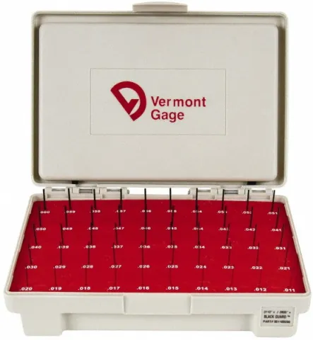 Vermont Gage, 901100200, Class ZZ Plug Gage Set, 0.011 to 0.06" Range, 50 pcs, 0.000200" Tolerance, Black Oxide